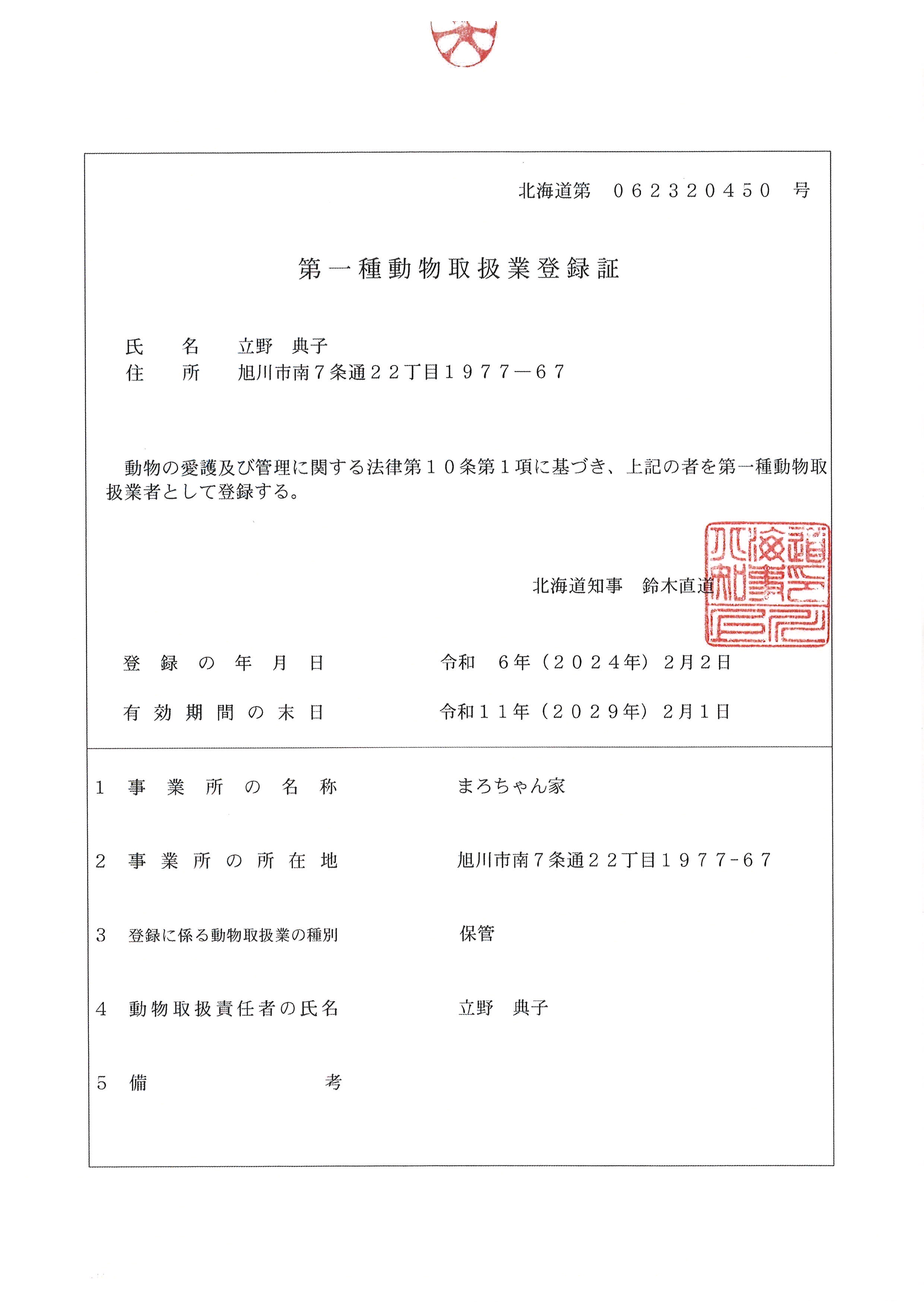 まろちゃん家(ち) 北海道旭川市南7条通22丁目1977-67 立野 典子(たつの のりこ) 第1種動物取扱業 北海道第062320450号(保管) | 年中無休(お正月・お盆OK)